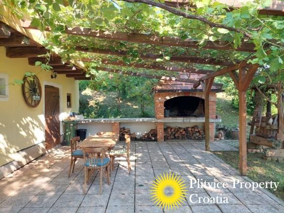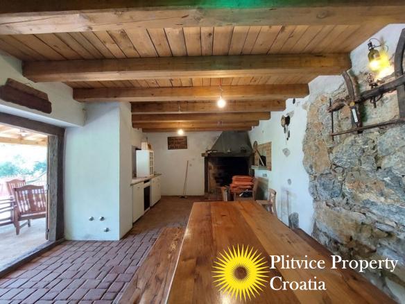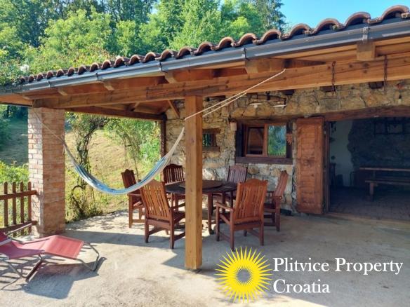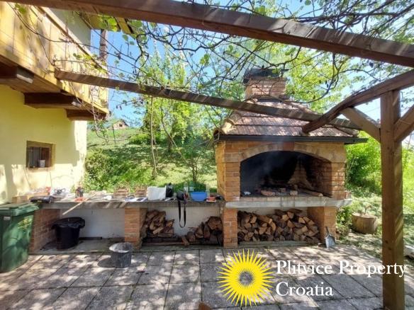 This stunning property offers the perfect opportunity to enjoy the peace and tranquility of village life in the beautiful Zumberak region of Croatia. The property features a charming house with rustic wooden doors, a spacious terrace, and a large barbecue, ideal for outdoor entertaining or relaxing with friends and family.