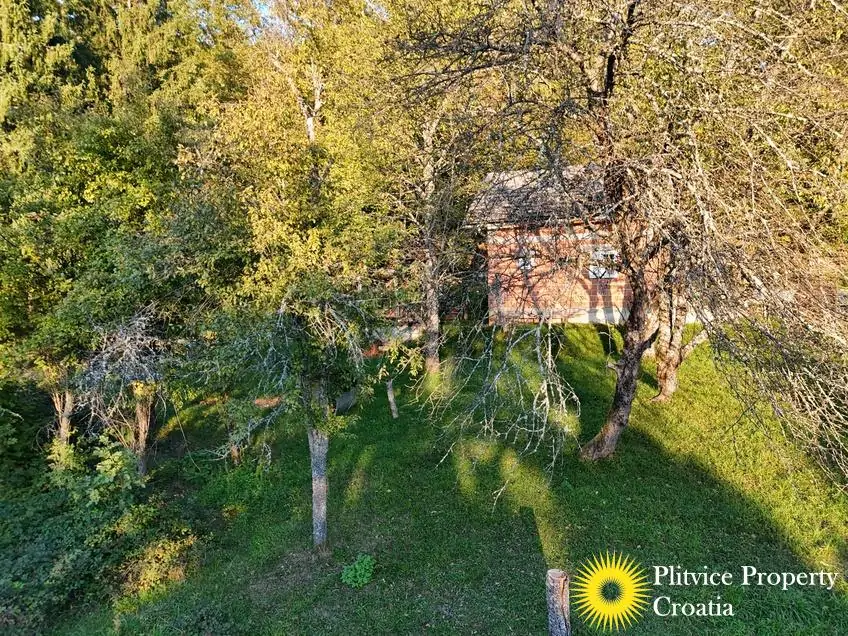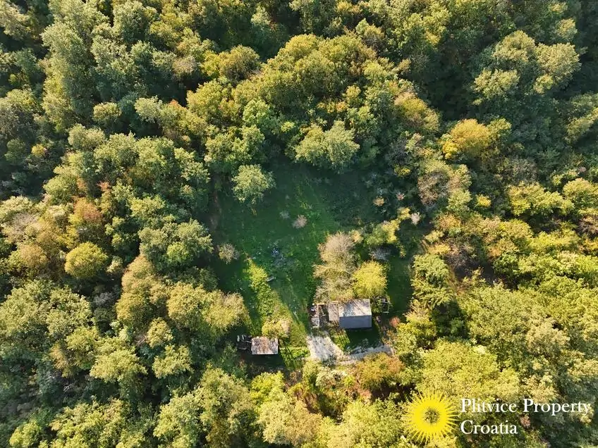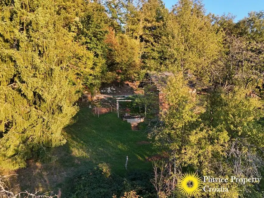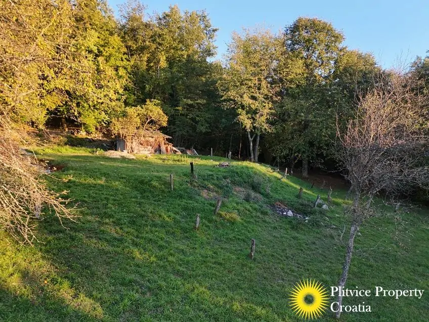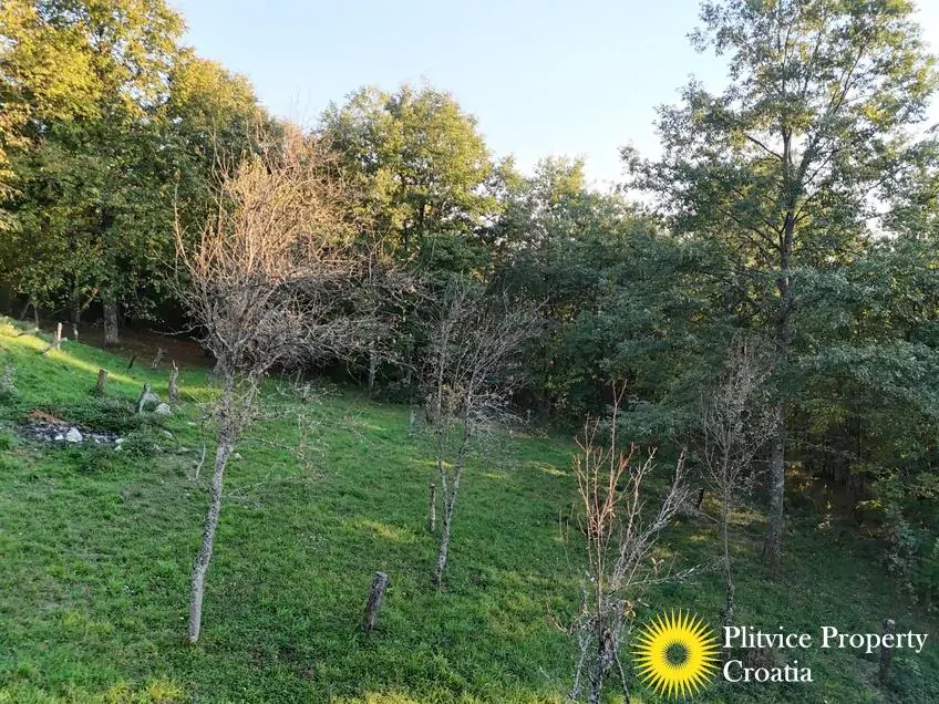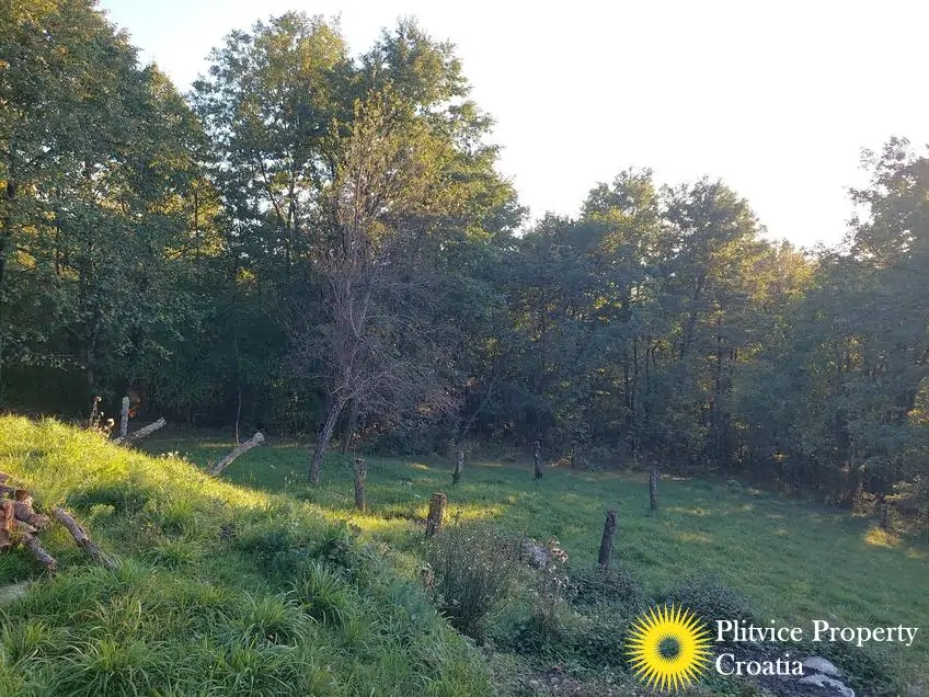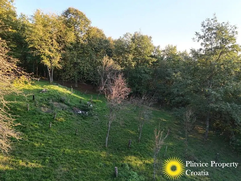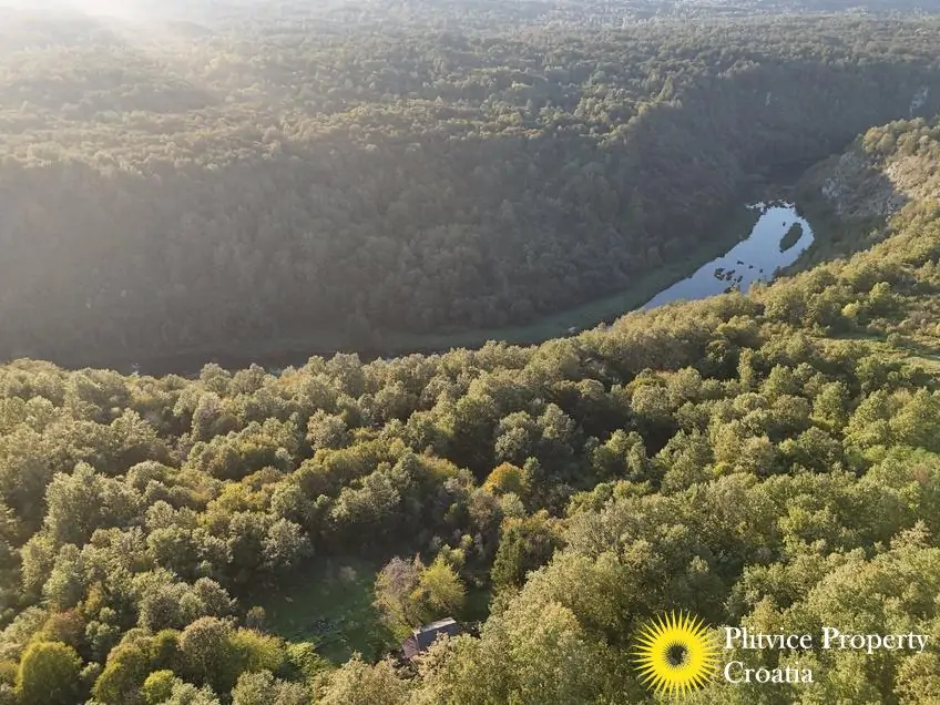 The property consists of four connected parcels forming one piece of land, with a total of 9,980 m² — approximately 7,700 m² of which lies within the building zone. Surrounded by forest, old orchards, and meadows, it offers a beautiful natural environment with walking paths through the woods and towards the river Korana, perfect for relaxation or walking your dog.