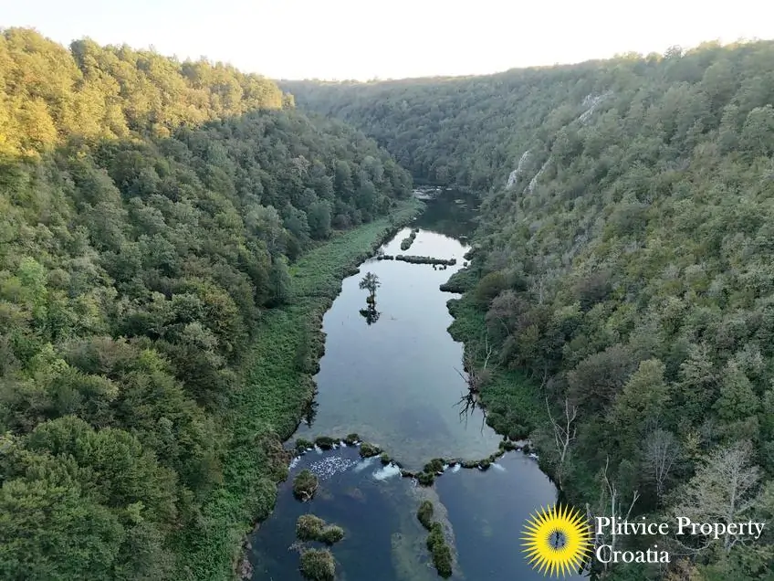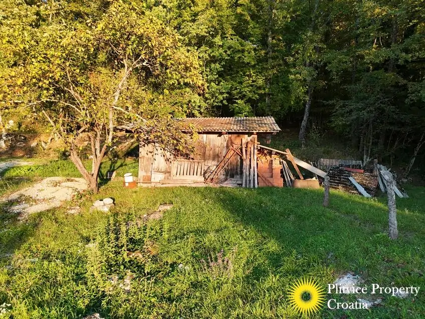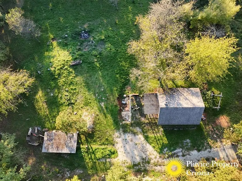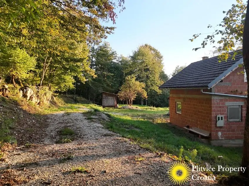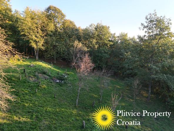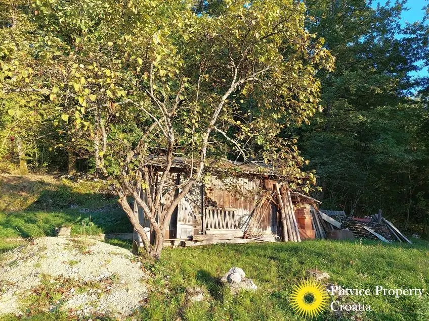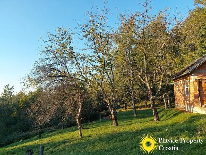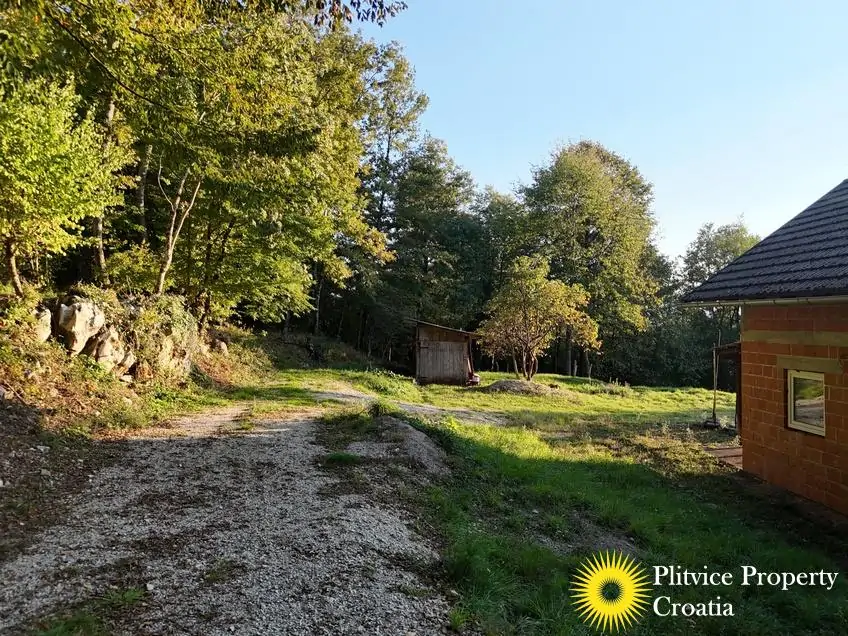 The property consists of four connected parcels forming one piece of land, with a total of 9,980 m² — approximately 7,700 m² of which lies within the building zone. Surrounded by forest, old orchards, and meadows, it offers a beautiful natural environment with walking paths through the woods and towards the river Korana, perfect for relaxation or walking your dog.