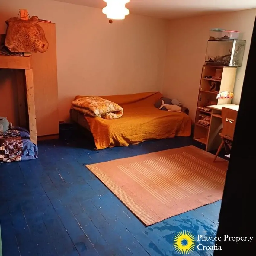 This family house is located near Ozalj and is arranged over multiple levels, including a ground floor, first floor, attic, and cellar. The main house offers a total living area of 130 m² and and is connected to a 1,283 m² plot, providing ample outdoor space.
