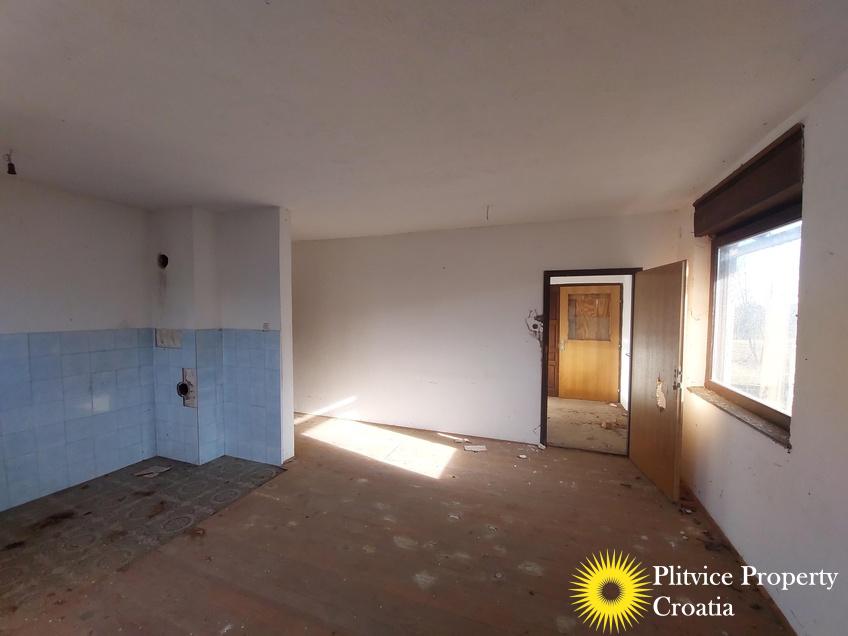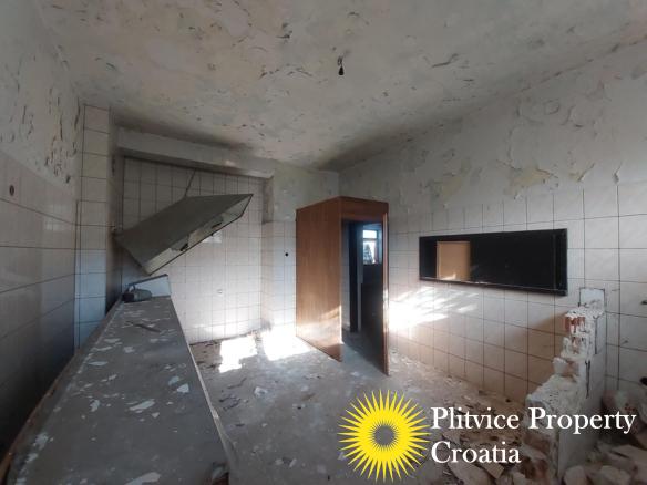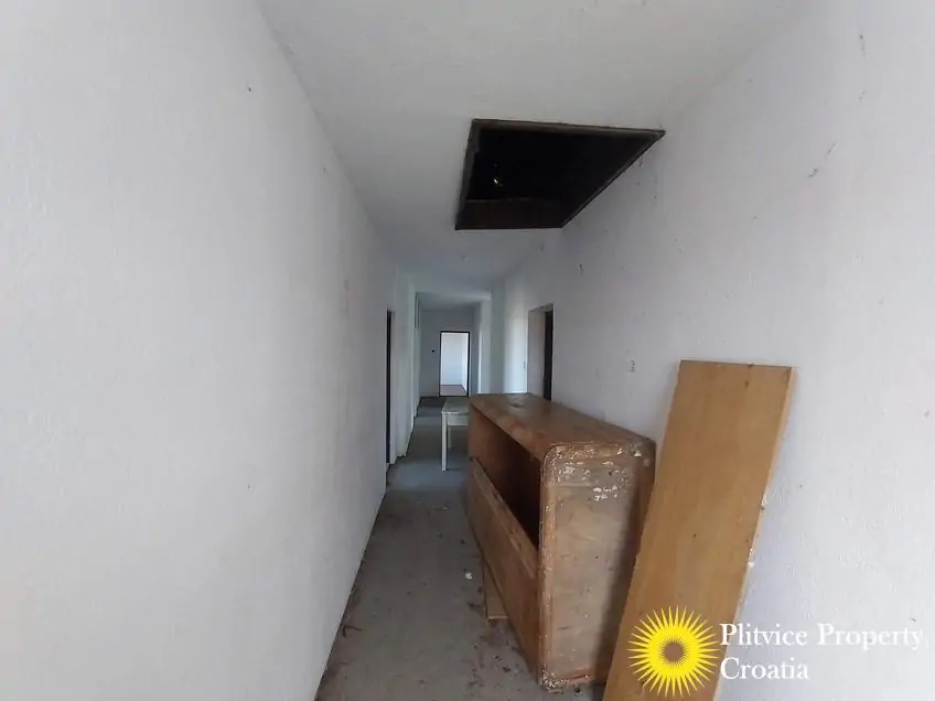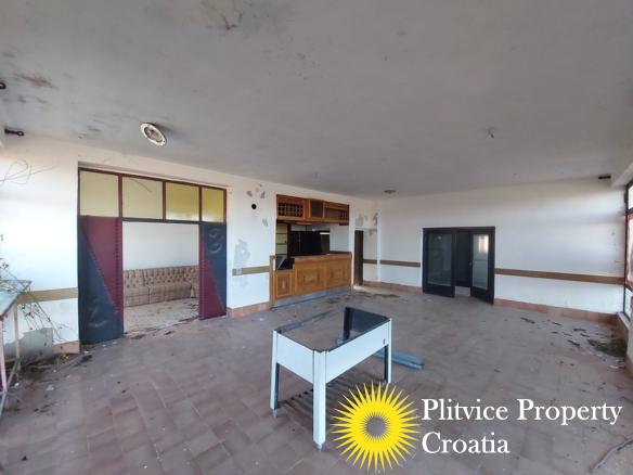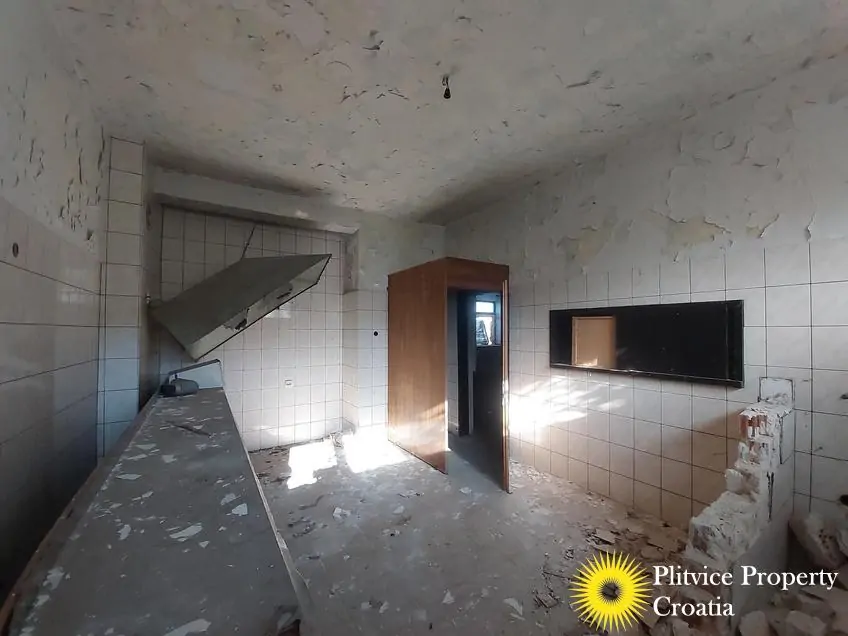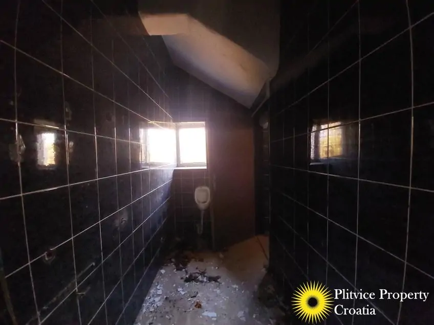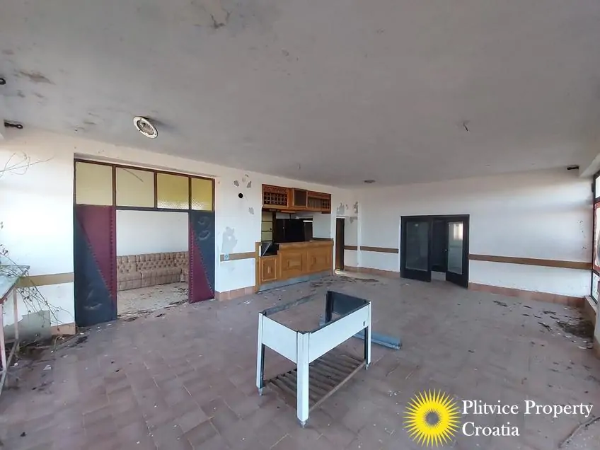 The main building previously operated as a restaurant with guest space. It has not been used for a long time and requires complete renovation. The building is divided into three levels — ground floor, first floor, and attic — offering various possibilities for redevelopment, such as continuing a hospitality business, creating apartments, or adapting it for another commercial purpose in accordance with its designation.