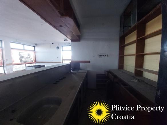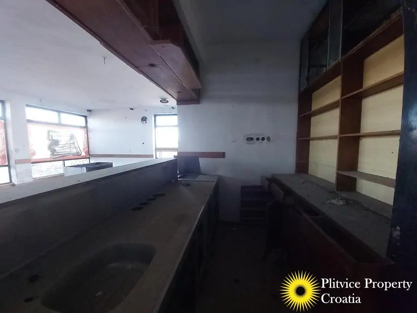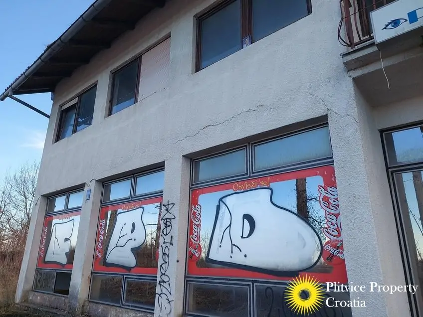 The property consists of a former restaurant situated on a single parcel of 1,143 m², fully located within the building zone. The building is designated for mixed residential and commercial use, specifically as a hospitality facility.