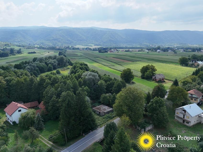 Nestled in the heart of the picturesque Croatian countryside, this building and agricultural plot in Lapat near Plaški offers a serene retreat from the hustle and bustle of urban life. Plaški, known for its unspoiled natural beauty, provides a tranquil setting surrounded by lush greenery, rolling hills, and a harmonious blend of forests and meadows. Life in this idyllic location is characterized by a slower pace, allowing residents to connect with nature and enjoy a peaceful, laid-back lifestyle.