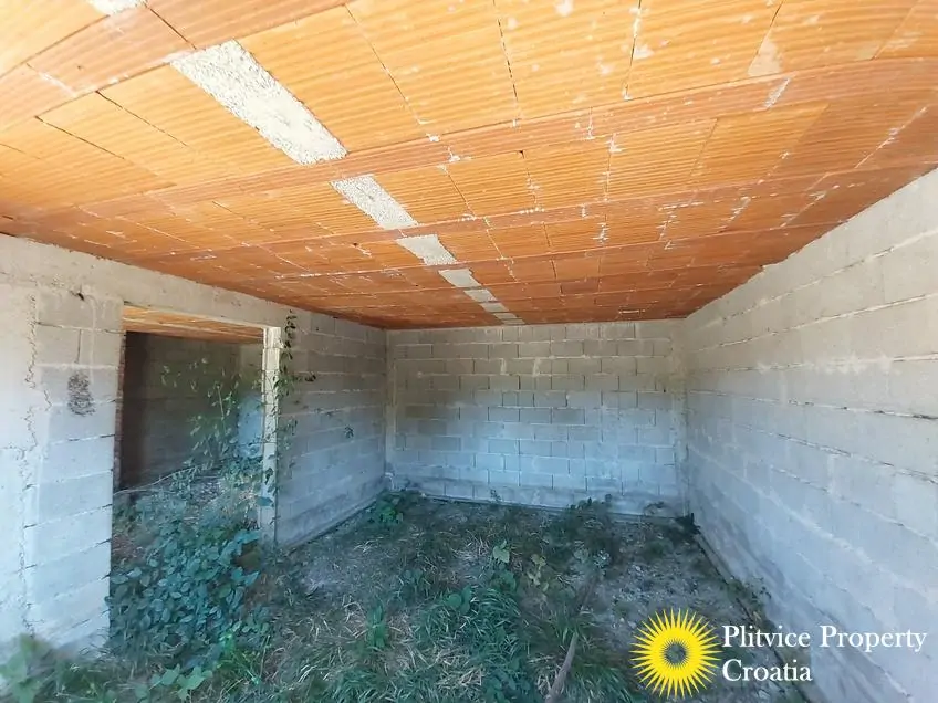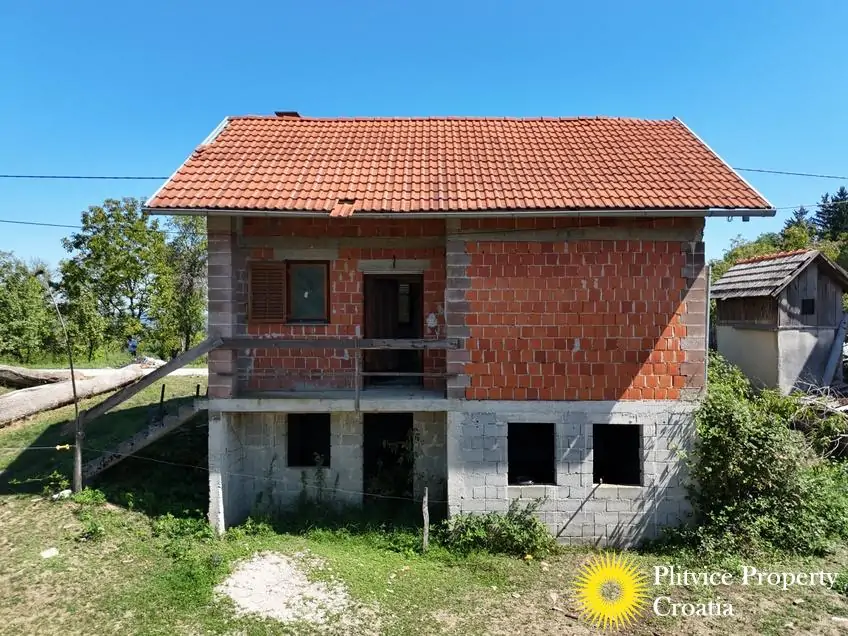 The house is spread over three levels: a cellar, a ground floor, and an undeveloped attic that offers additional potential for expansion. Originally built as part of the post-war reconstruction (obnova), the property was never fully completed, making it a great opportunity for buyers who want to finish and customize it to their own taste. The home also includes two balconies, one of which offers a view of the historic Cetingrad Castle.