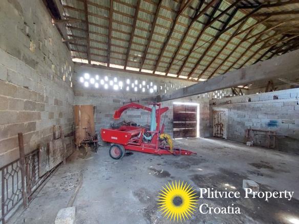 In addition to the main house, there is a second building on the property that includes a double garage and an animal shelter. This building is in good condition and could be used for a variety of purposes.