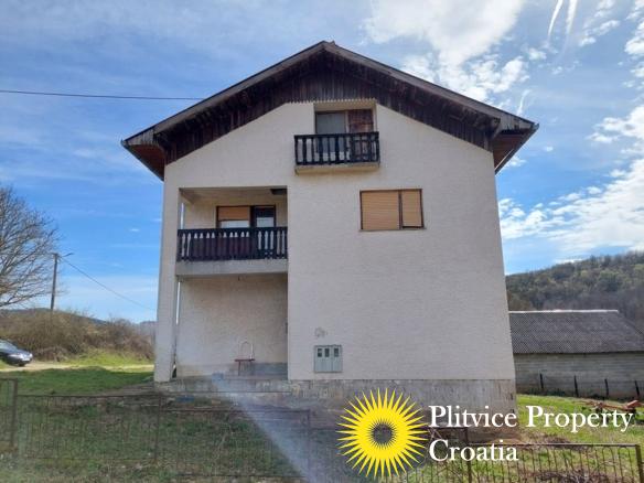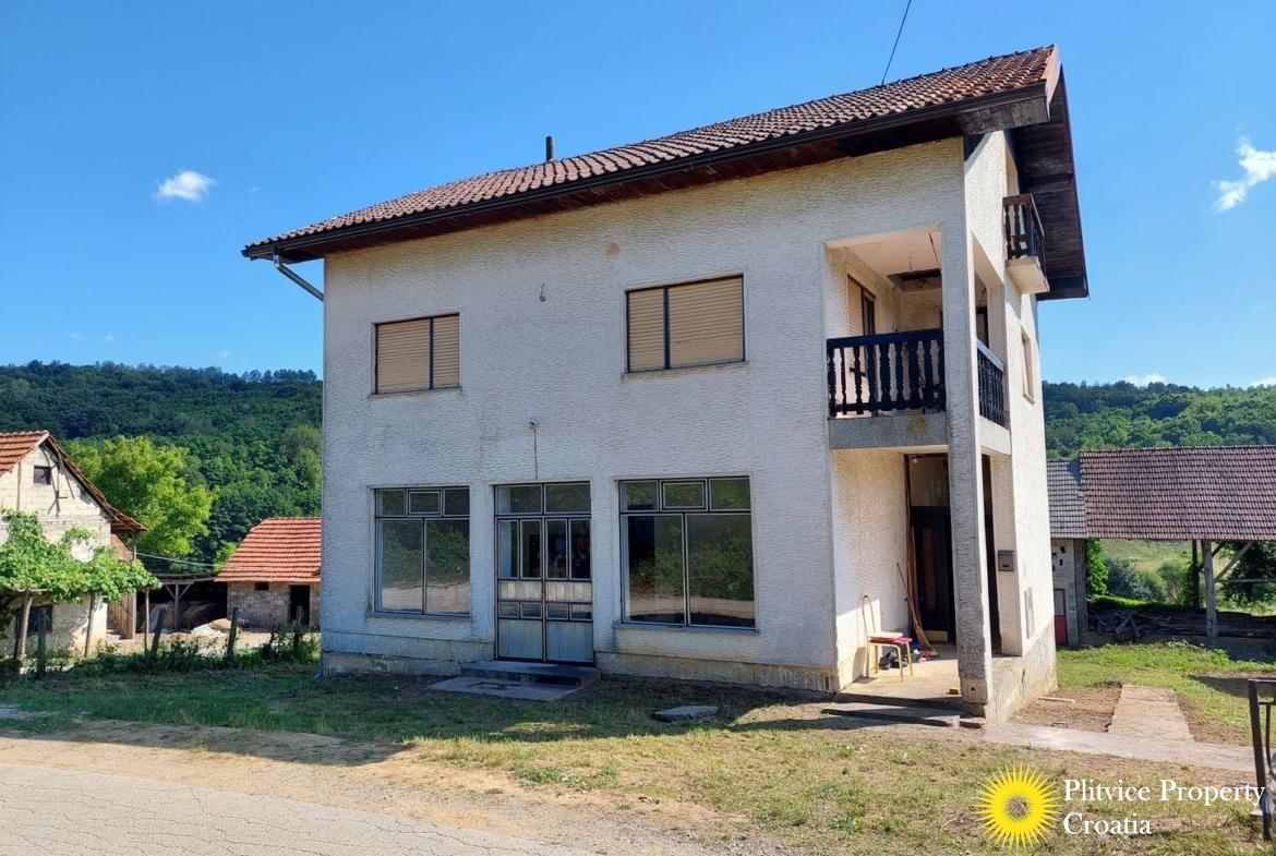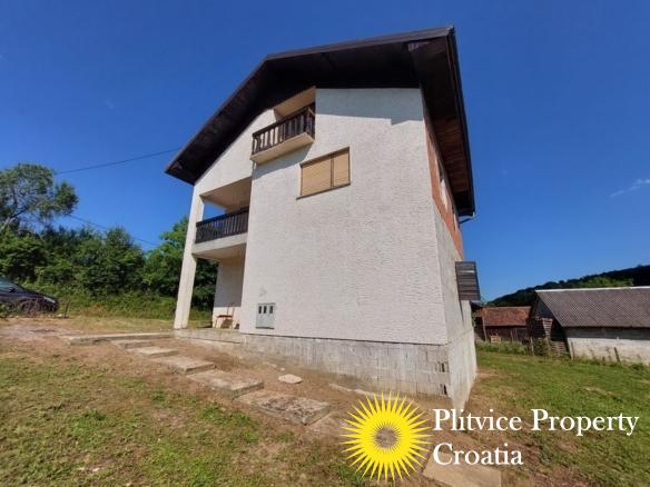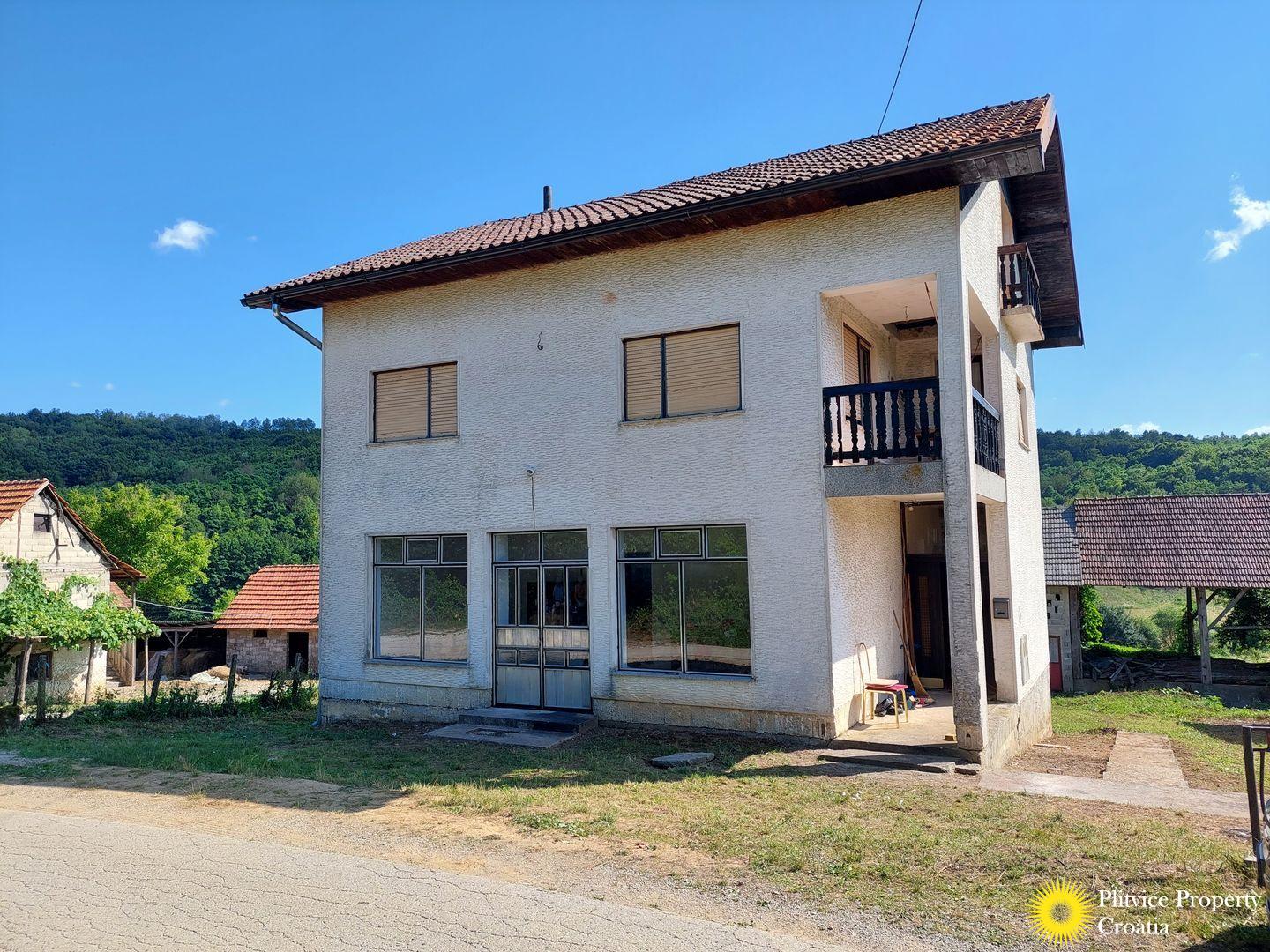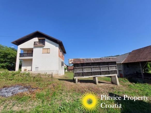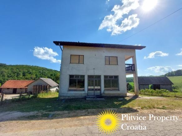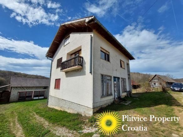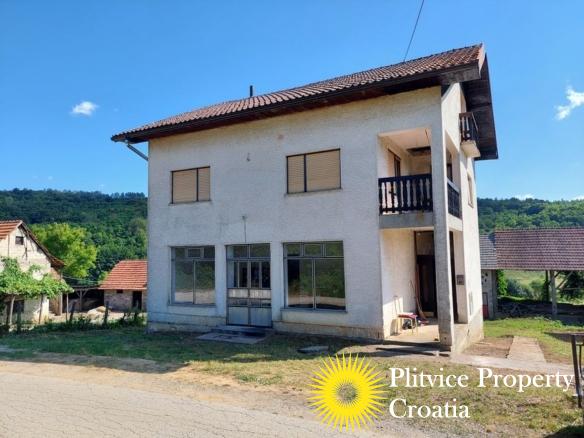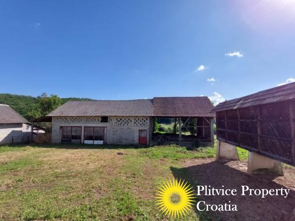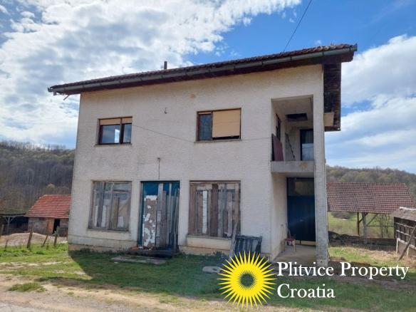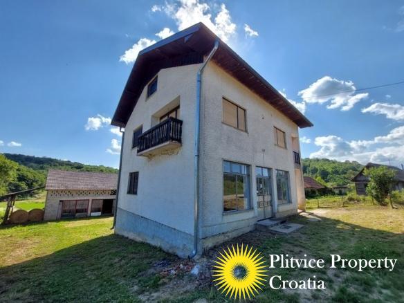 Spacious house in the idyllic village of Svinica Krstinjska, Vojnić. This property boasts 4829 m² of land, most of which is lush meadow perfect for grazing animals or gardening. The property also features a babbling stream just 20 meters behind the land, providing a peaceful and serene backdrop.