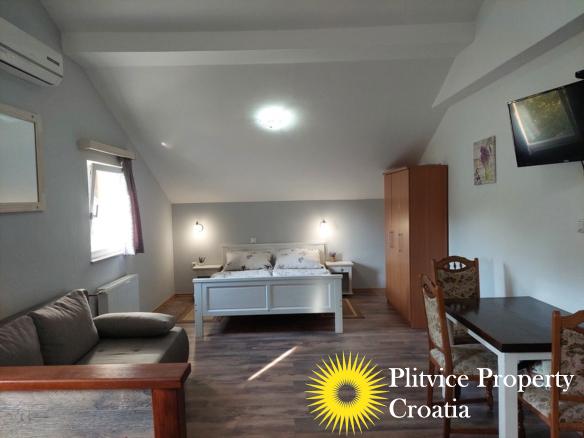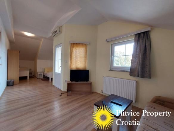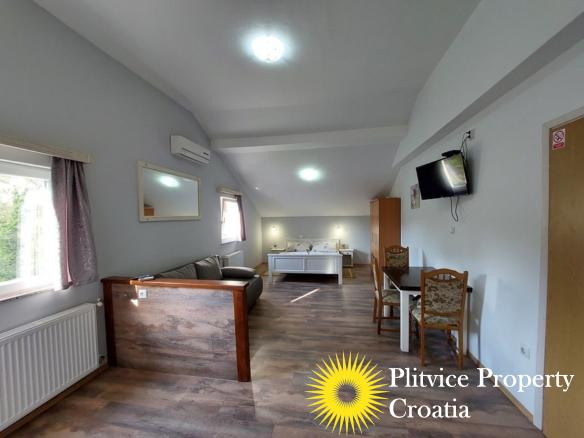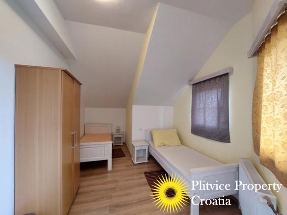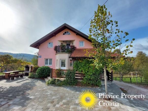 Nestled in a tranquil neighborhood near to the picturesque river Korana, this guesthouse offers a unique opportunity for a family residence or a thriving hospitality business. Completed in 2016, the property is spread across multiple levels, including a cellar, ground floor, first floor, and an undeveloped attic, providing ample space and flexibility for your needs.