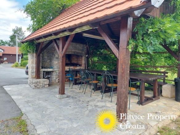 Behind the hotel, a delightful covered terrace awaits, complete with a barbecue area. This cozy outdoor space provides an ideal setting for guests to unwind, socialize, and savor delicious grilled meals while surrounded by the natural beauty of Rakovica.