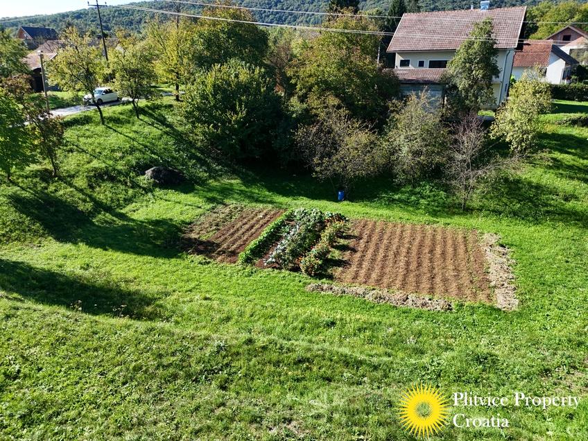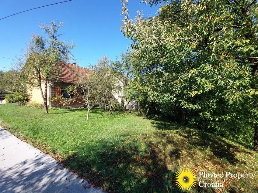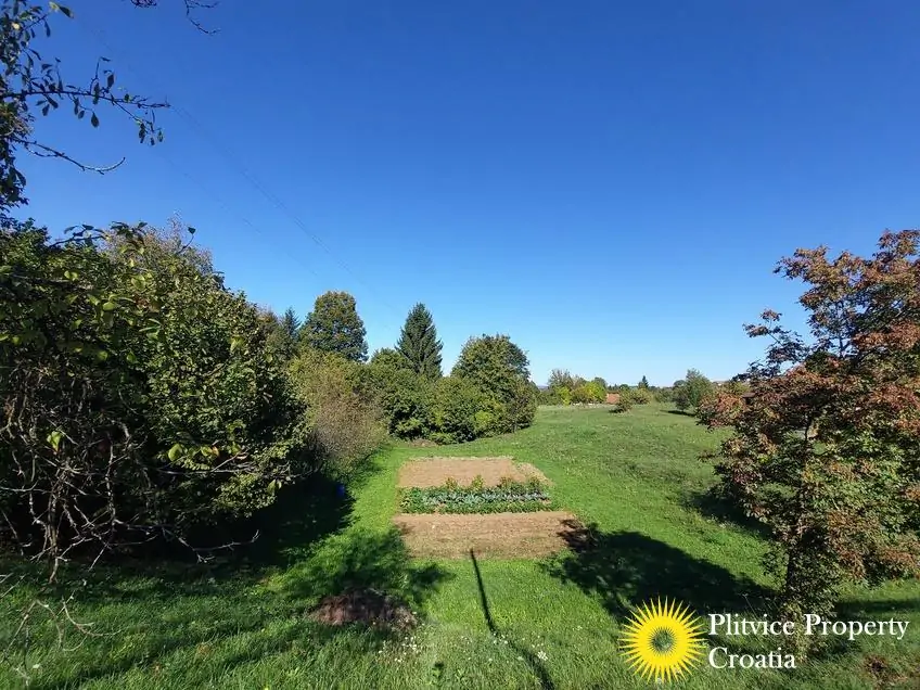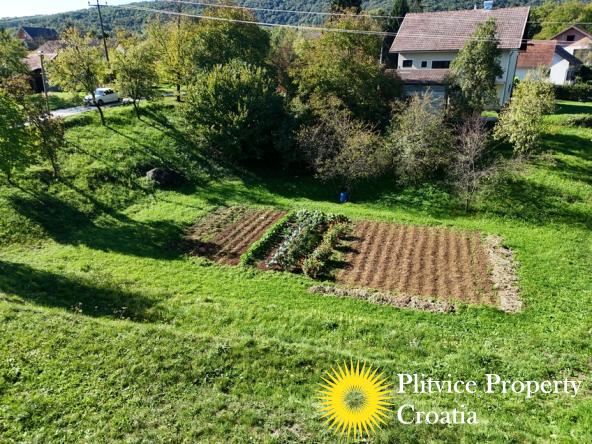 This family house is located in Slunj, just 1 km from the city center. The property consists of two parcels with a total land area of 3,787 m². The house is situated on the first parcel, while the second parcel lies directly behind it and is fully within the building zone, offering additional potential for development.
