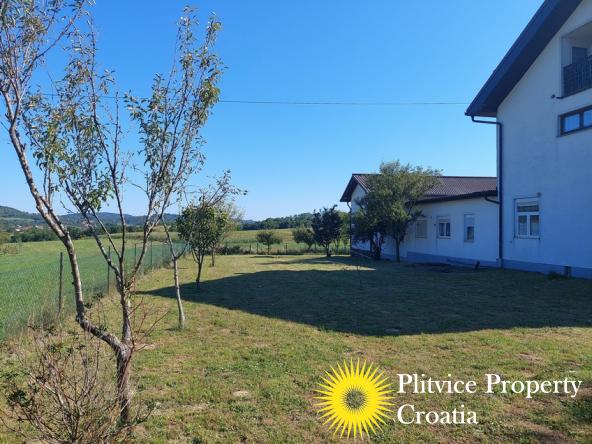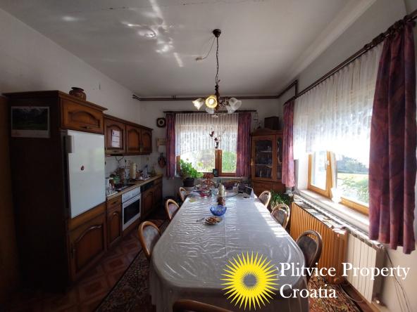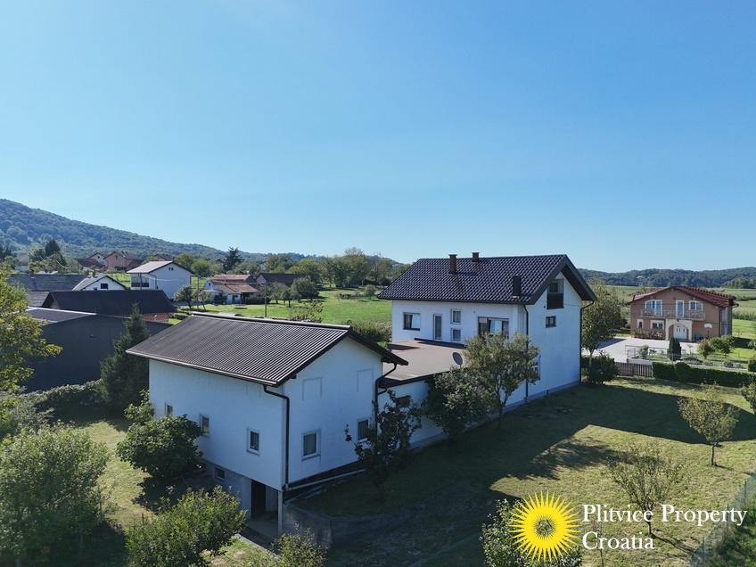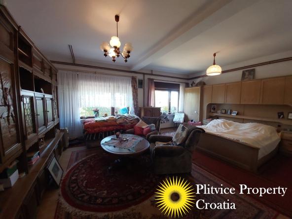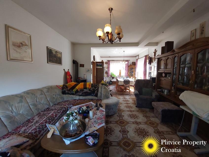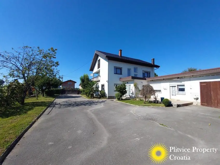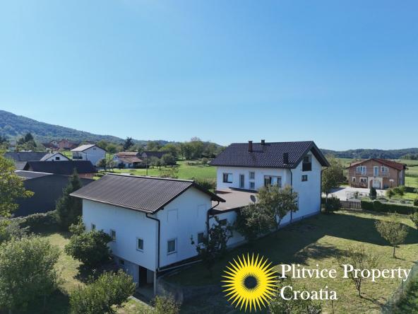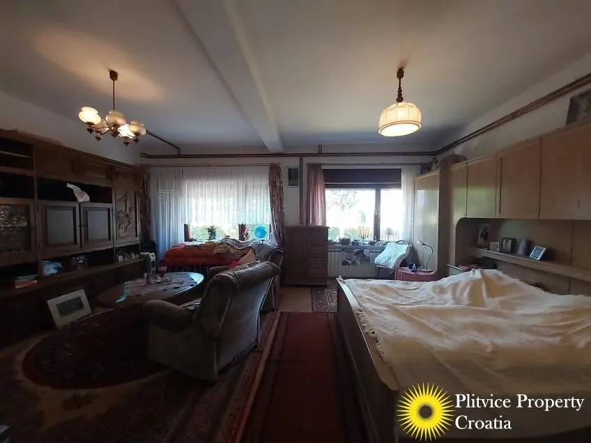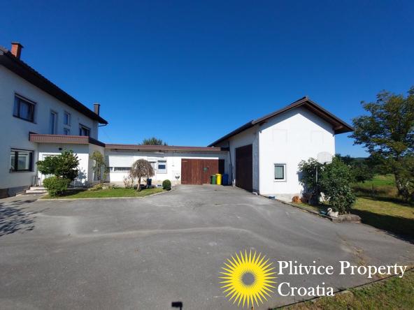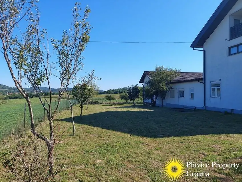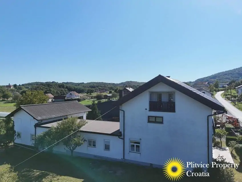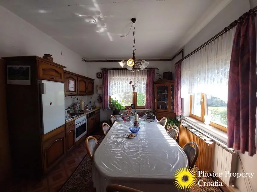 Located in the village of Ladvenjak, just 600 m from the beautiful Korana River, this spacious family home offers generous living space and excellent development potential. The property is set on three connected parcels with a total area of 3,905 m², of which approximately 3,000 m² is in the building zone.
