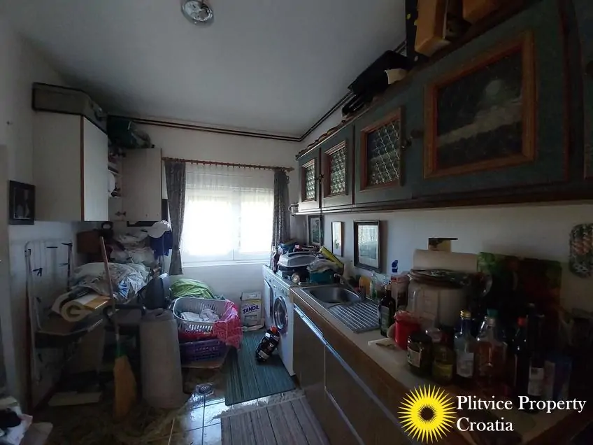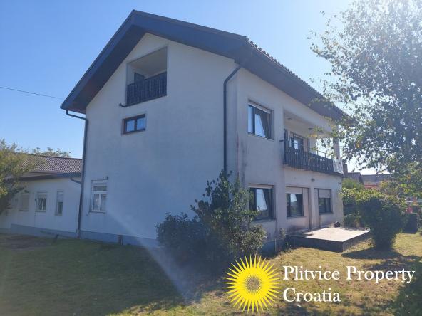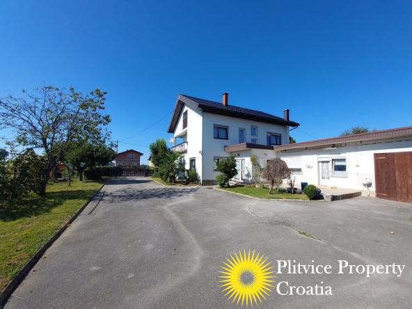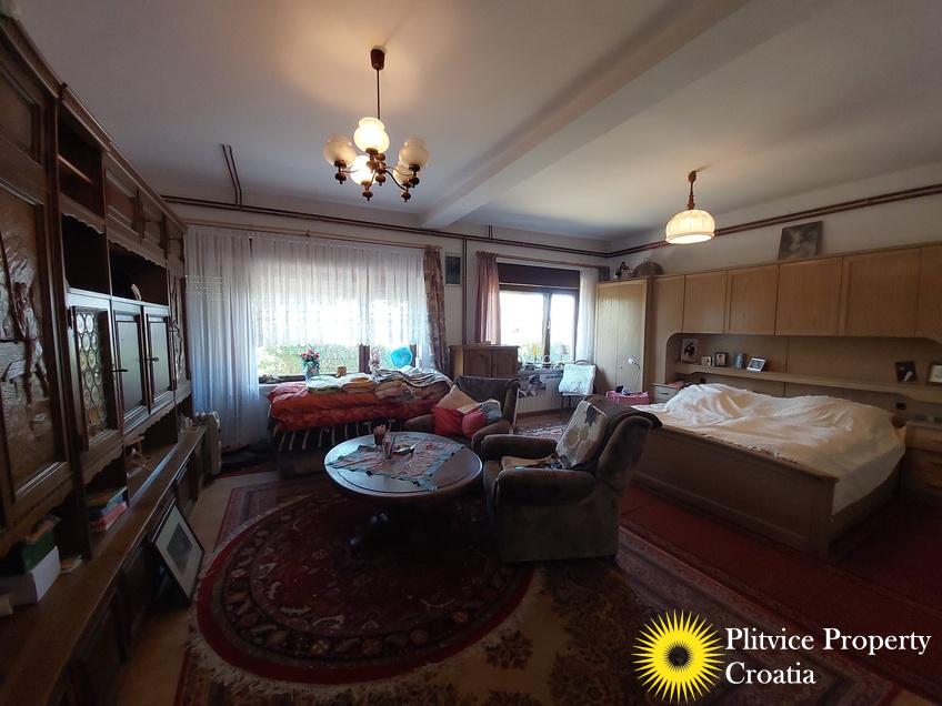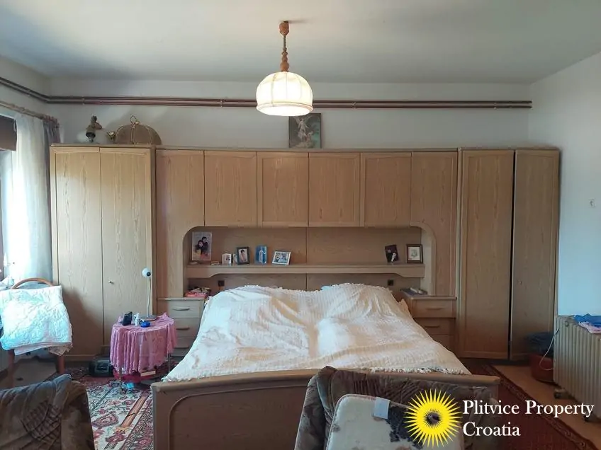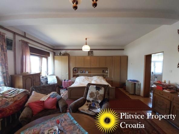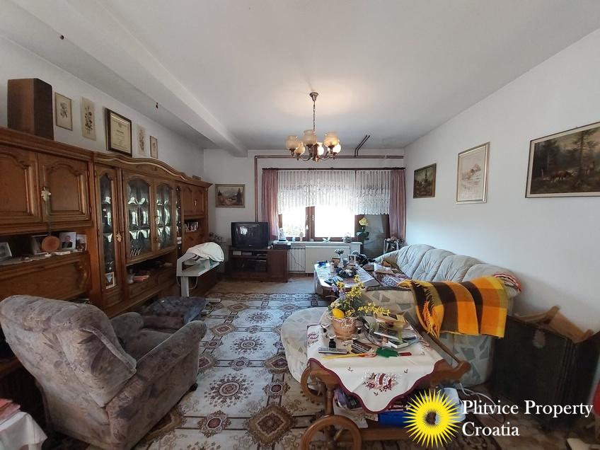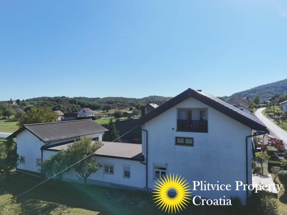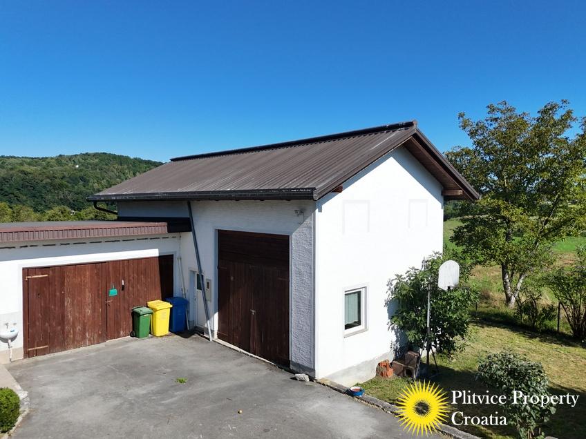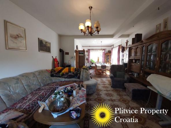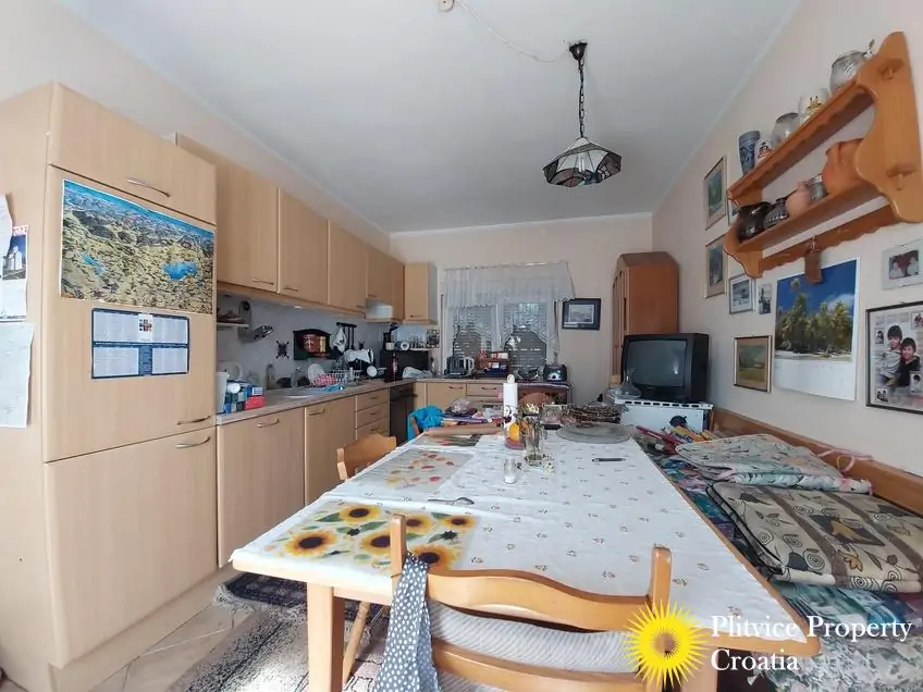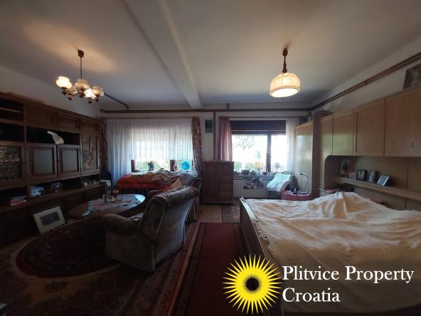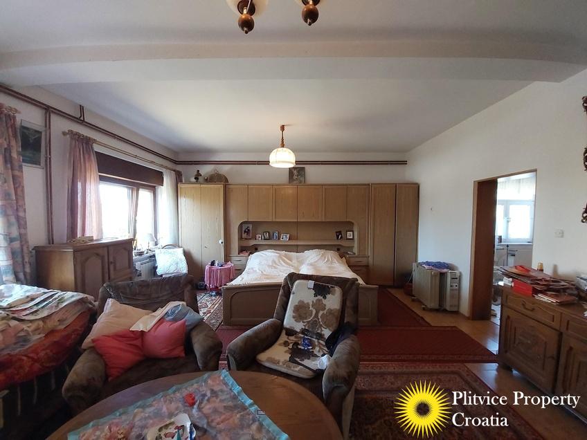 Located in the village of Ladvenjak, just 600 m from the beautiful Korana River, this spacious family home offers generous living space and excellent development potential. The property is set on three connected parcels with a total area of 3,905 m², of which approximately 3,000 m² is in the building zone.