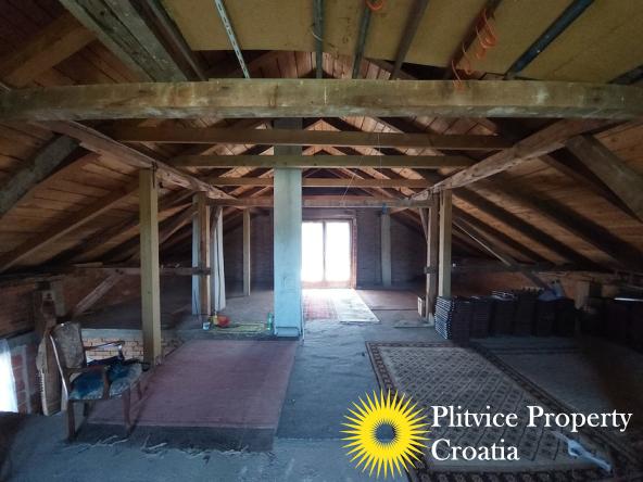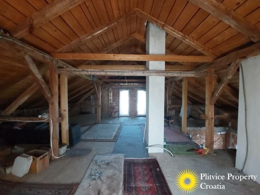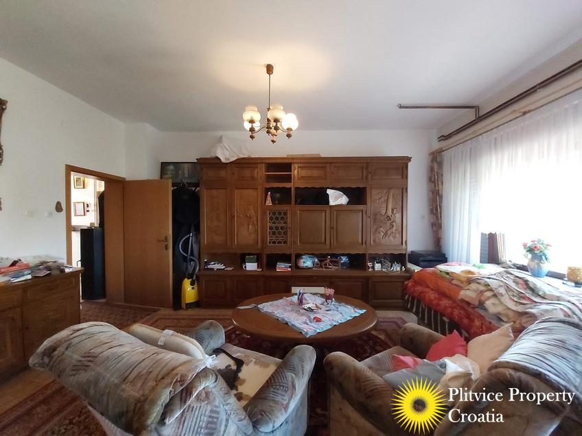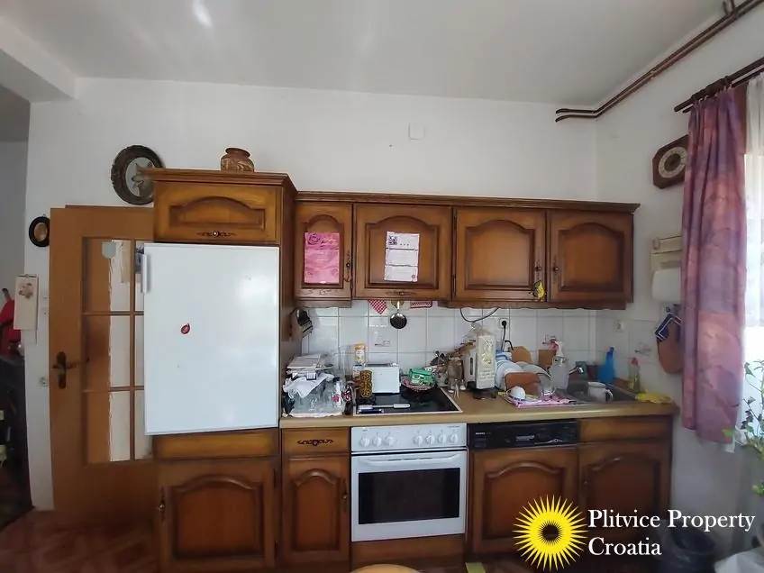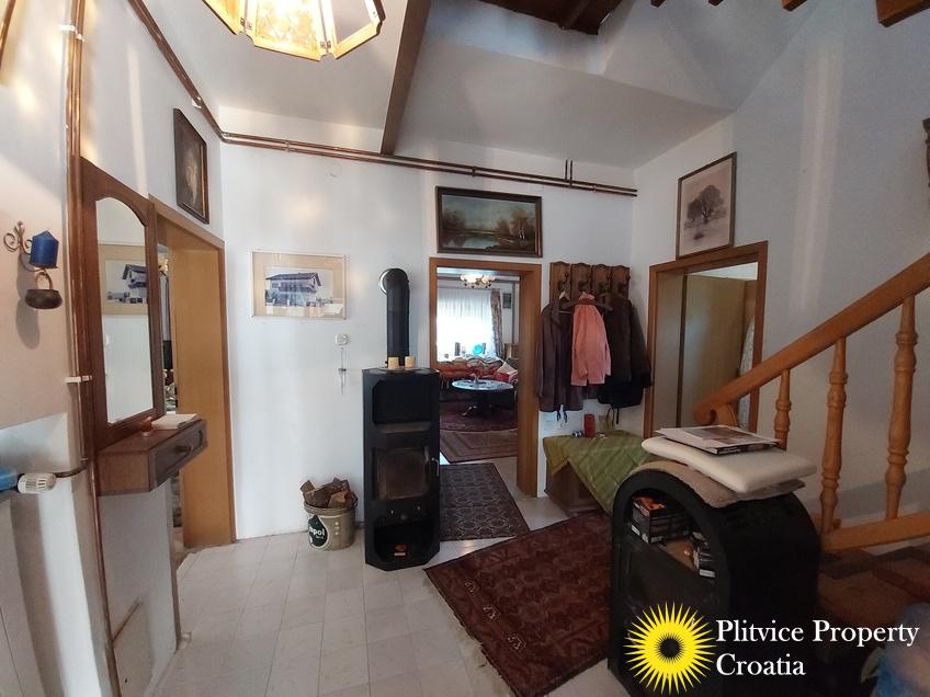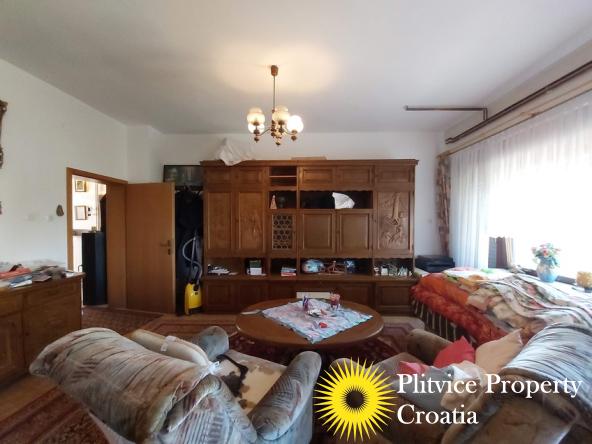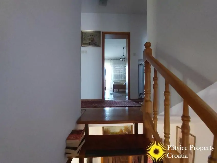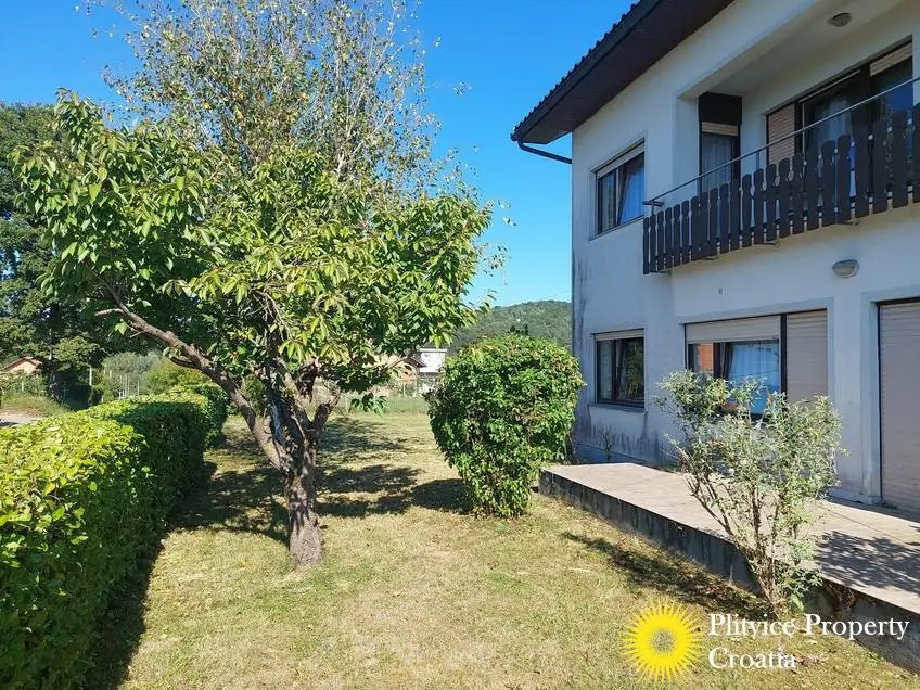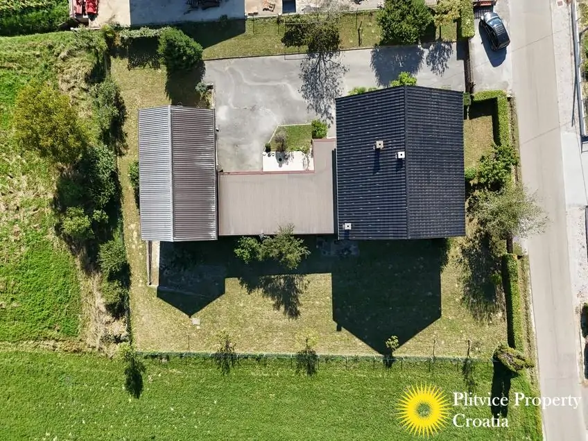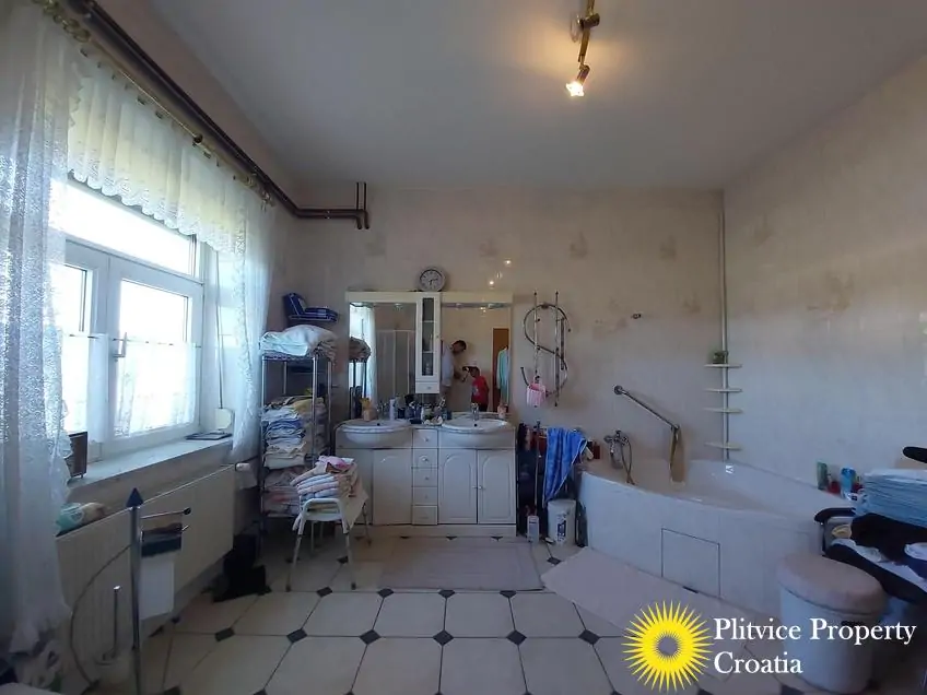 Located in the village of Ladvenjak, just 600 m from the beautiful Korana River, this spacious family home offers generous living space and excellent development potential. The property is set on three connected parcels with a total area of 3,905 m², of which approximately 3,000 m² is in the building zone.