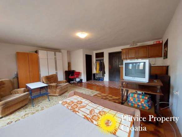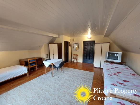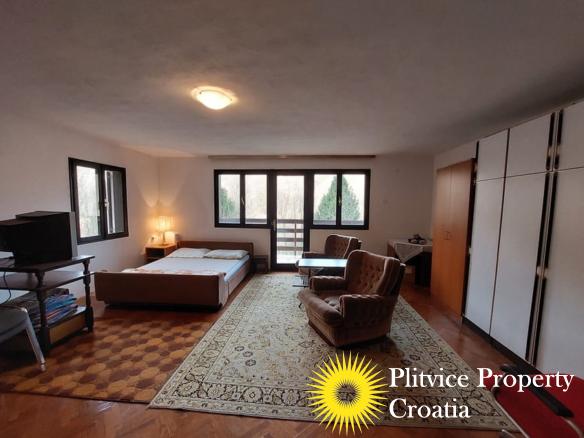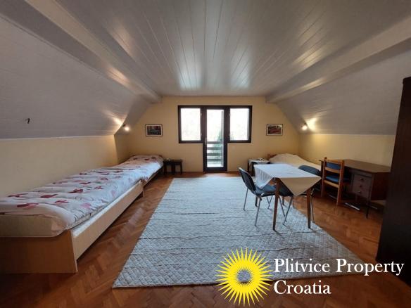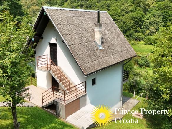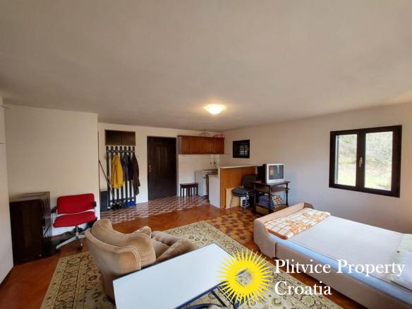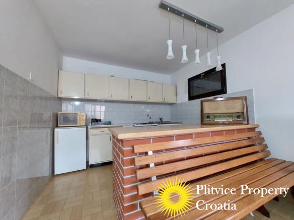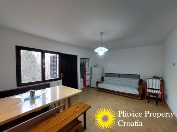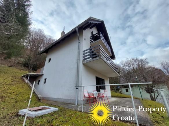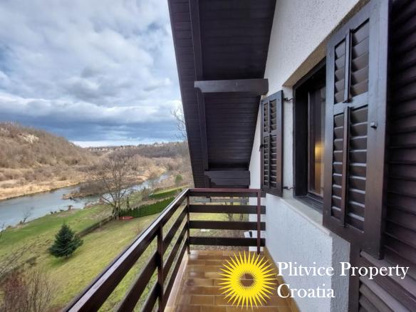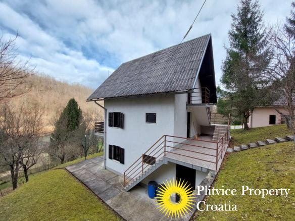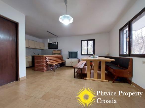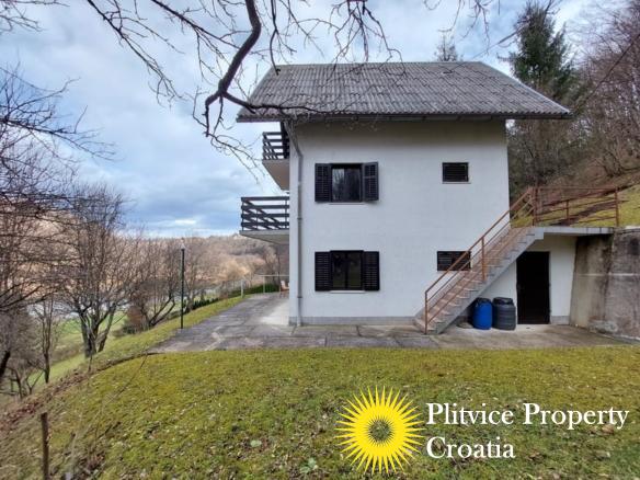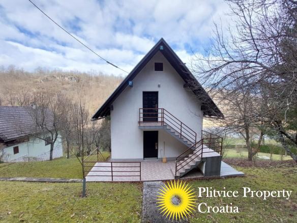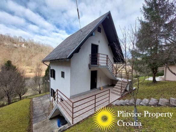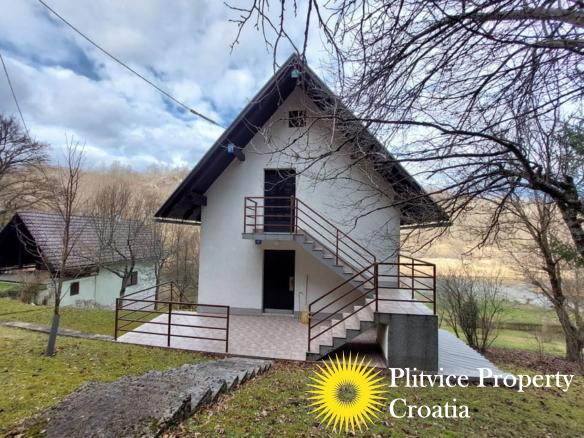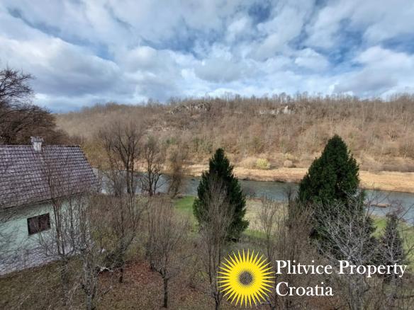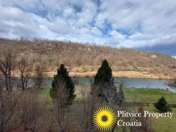 Nestled alongside the enchanting Korana river, this riverside retreat in Veljun offers serene living at its finest. Accessed via a convenient gravel road, the house is just 600 meters away from the asphalt road, ensuring both tranquility and accessibility.
