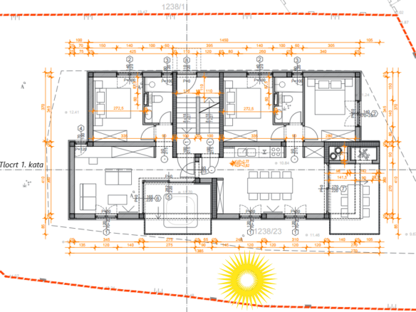 The first floor contains a spacious apartment with approximately 80 m² of floor space. It offers four bedrooms, two bathrooms, a kitchen with living space, and two charming terraces of 10 m² each. The property also boasts four bedrooms, two bathrooms, a kitchen with living space, and two charming terraces, each measuring 10 m². One terrace features a relaxing Jacuzzi, while the second terrace is equipped with a barbecue area for outdoor entertaining.