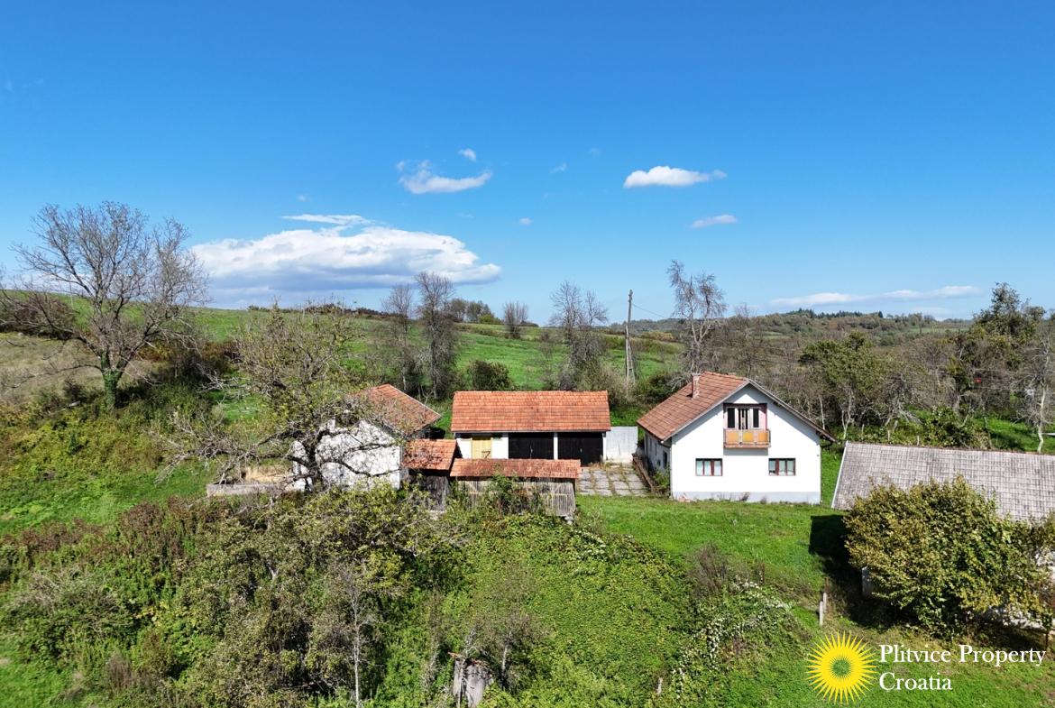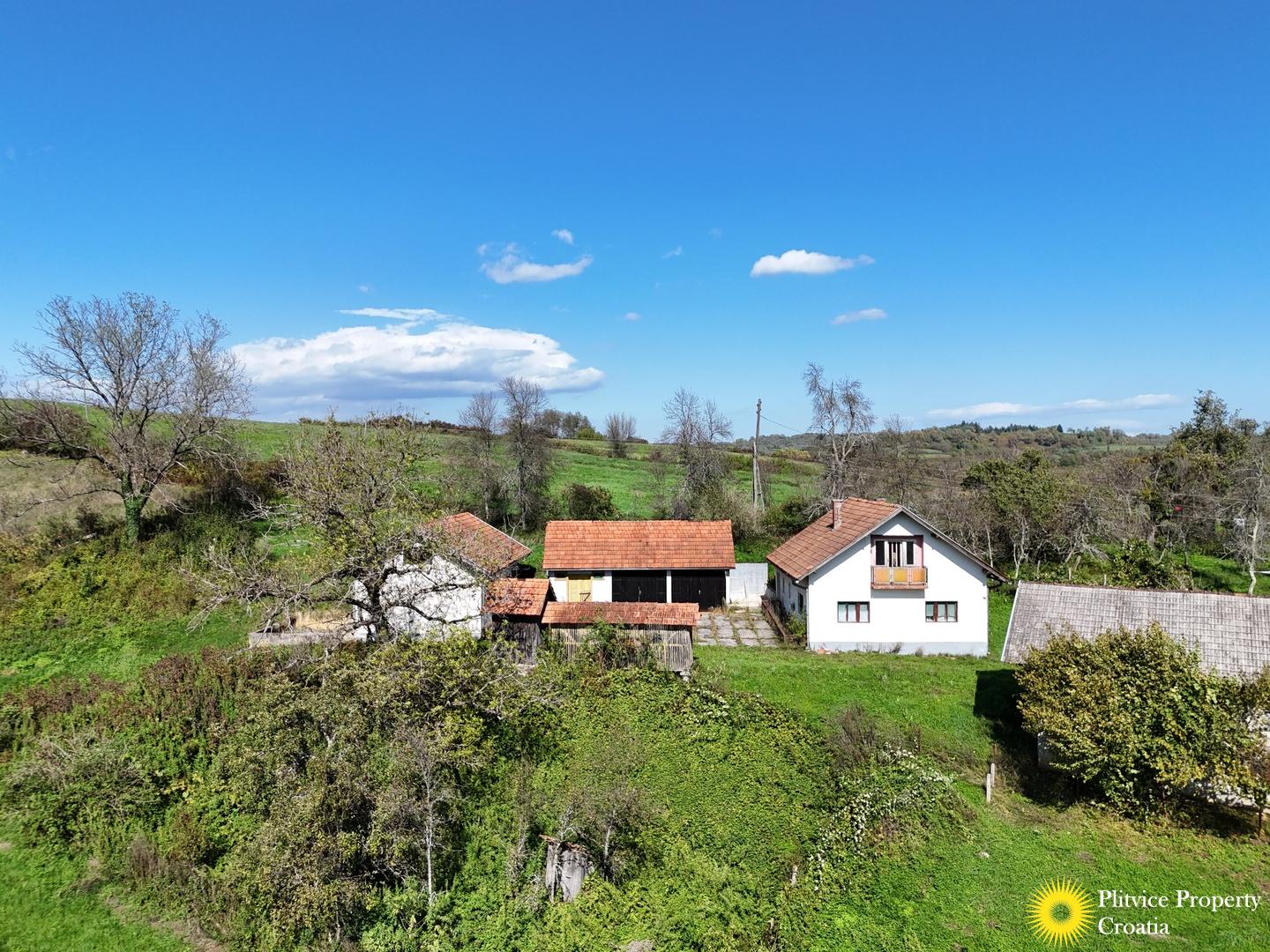 Situated in a scenic village near Budačka Rijeka, Krnjak, this property offers the best of rural living while still being within reach of nearby towns and essential services. The land’s expansive size and the variety of existing structures provide numerous opportunities for agriculture, animal husbandry, or hobby farming.