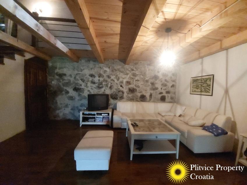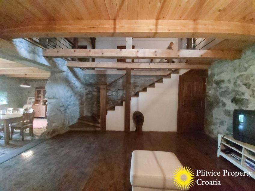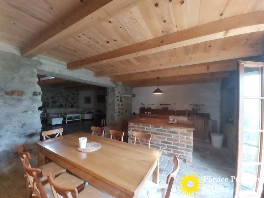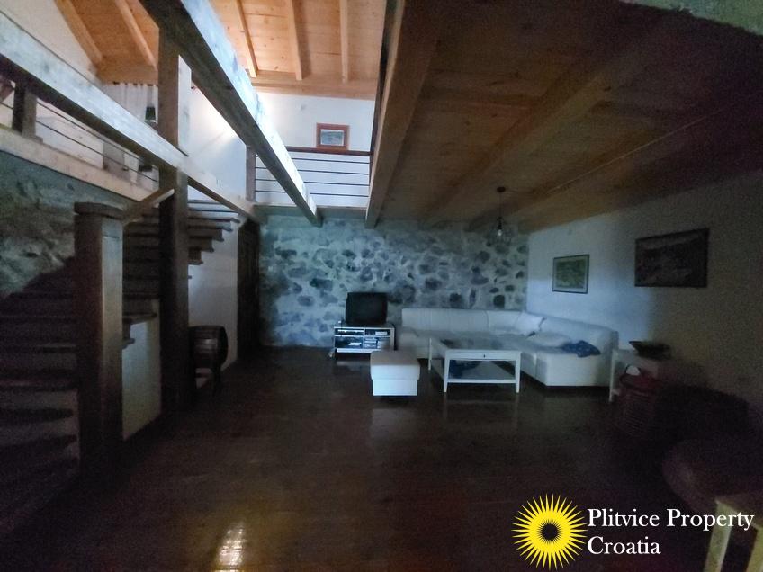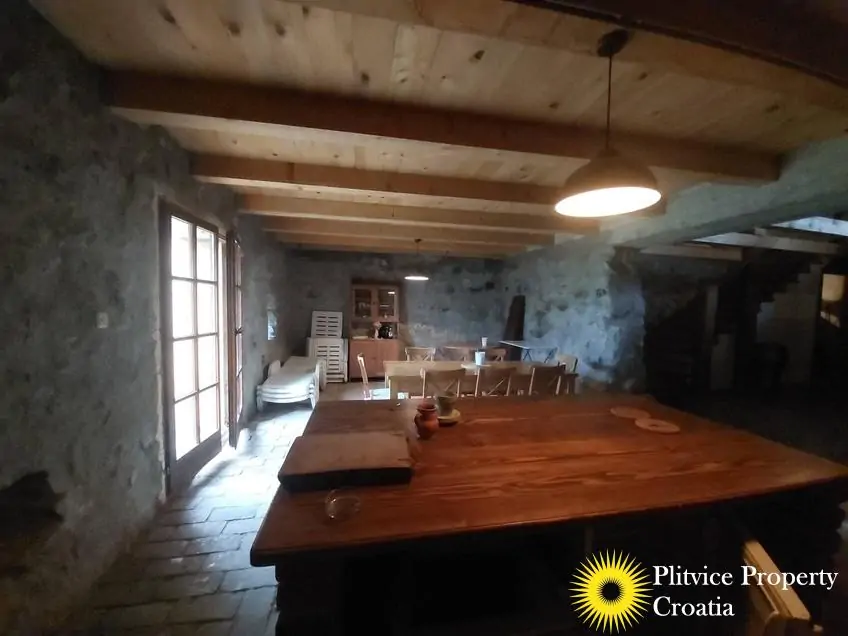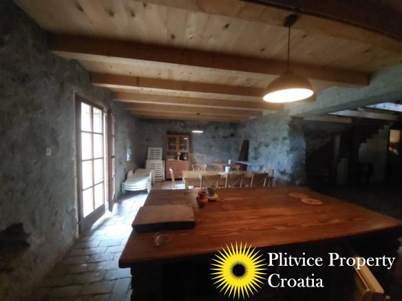 The property is located in Jezerane, a quiet rural area with good connections to nearby towns and natural attractions. It is approximately 10 km from Brinje, 35 km from Otočac, 28 km from Lake Sabljaci, and 42.5 km from Senj on the Adriatic coast.