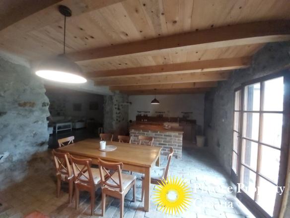 The interior features visible wooden beams, adding warmth and character throughout the house, while the kitchen is finished with traditional brick flooring, giving the property a distinctive rustic charm. The house is being sold fully furnished, allowing for immediate use or rental without additional investment.