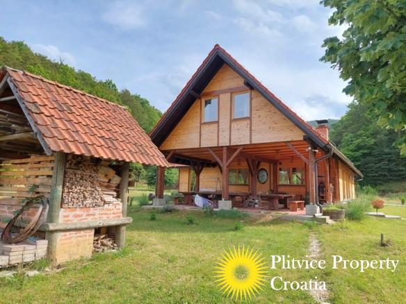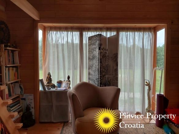 The heart of this haven is the wooden villa. You’re greeted by a generous covered open sitting area, complete with a barbecue for unforgettable gatherings. Central heating and triple glazing windows ensure year-round comfort.