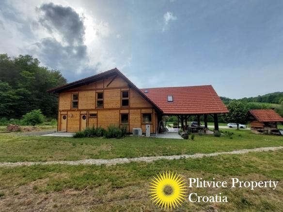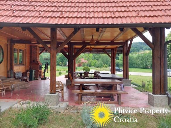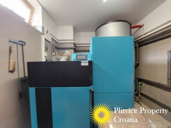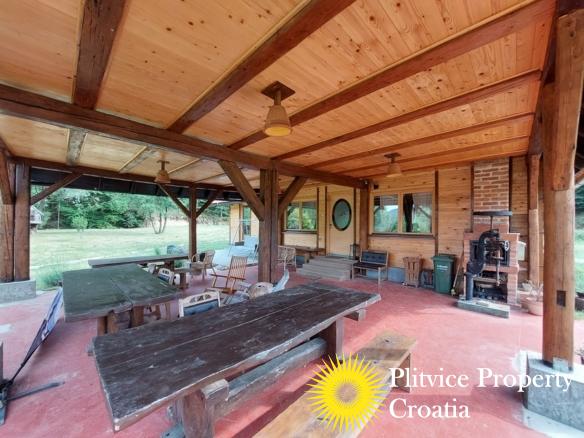 With a total floor space of 366 square metres in the wooden villa and an additional 30 square metres in other structures, this property offers abundant room for your family, guests and relaxation. Central heating and air conditioning ensure year-round comfort.